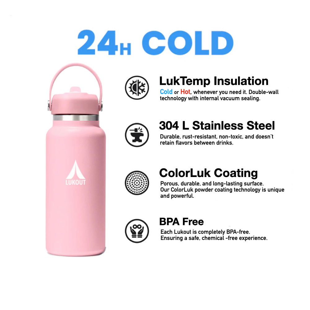 Wide Mouth 946 ml/32 Oz | Straw Handle | SOFT PINK